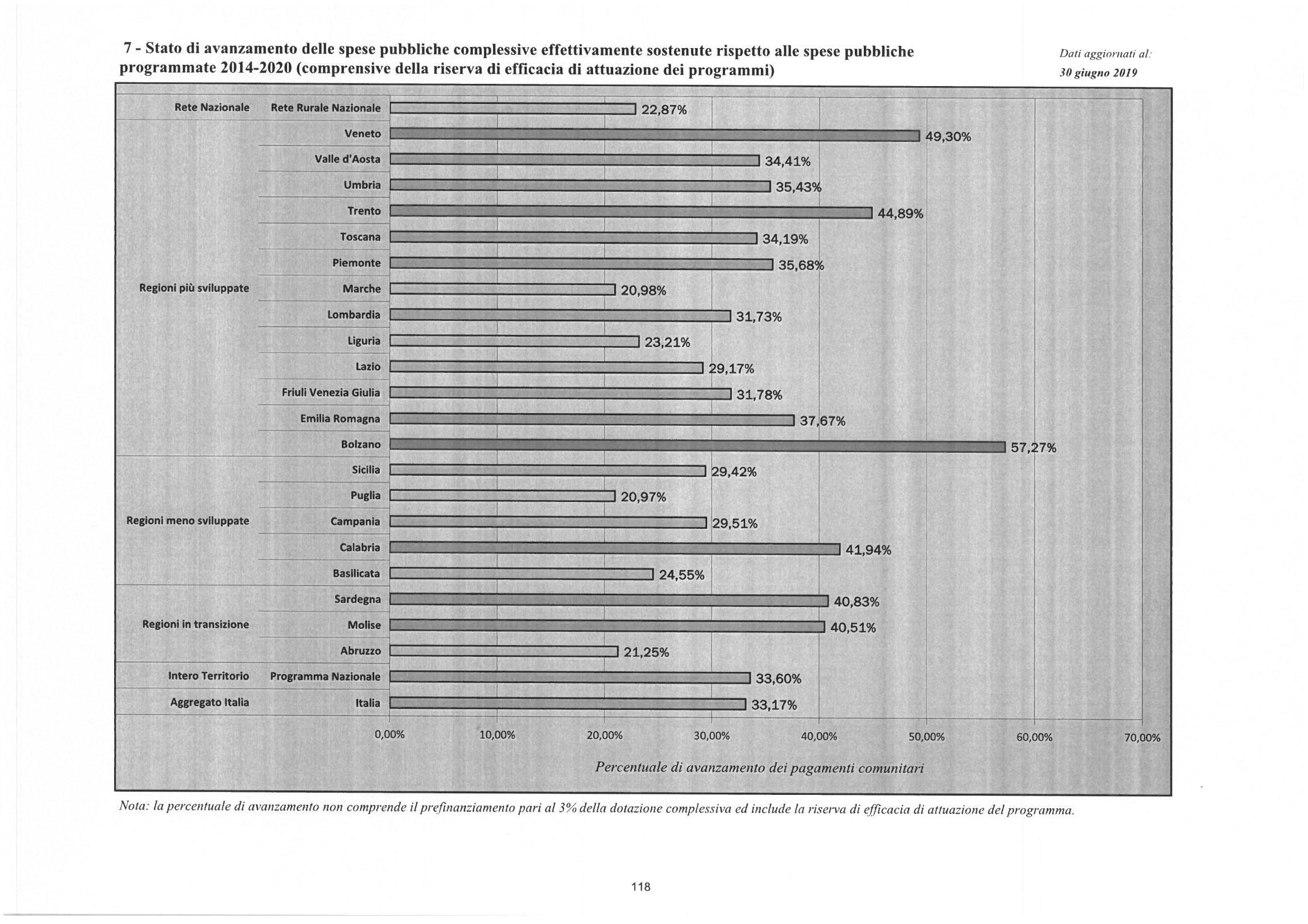 Stato di avanzamento delle spese pubbliche complessive effettivamente sostenute rispetto alle spese pubbliche programmate 2014-2020